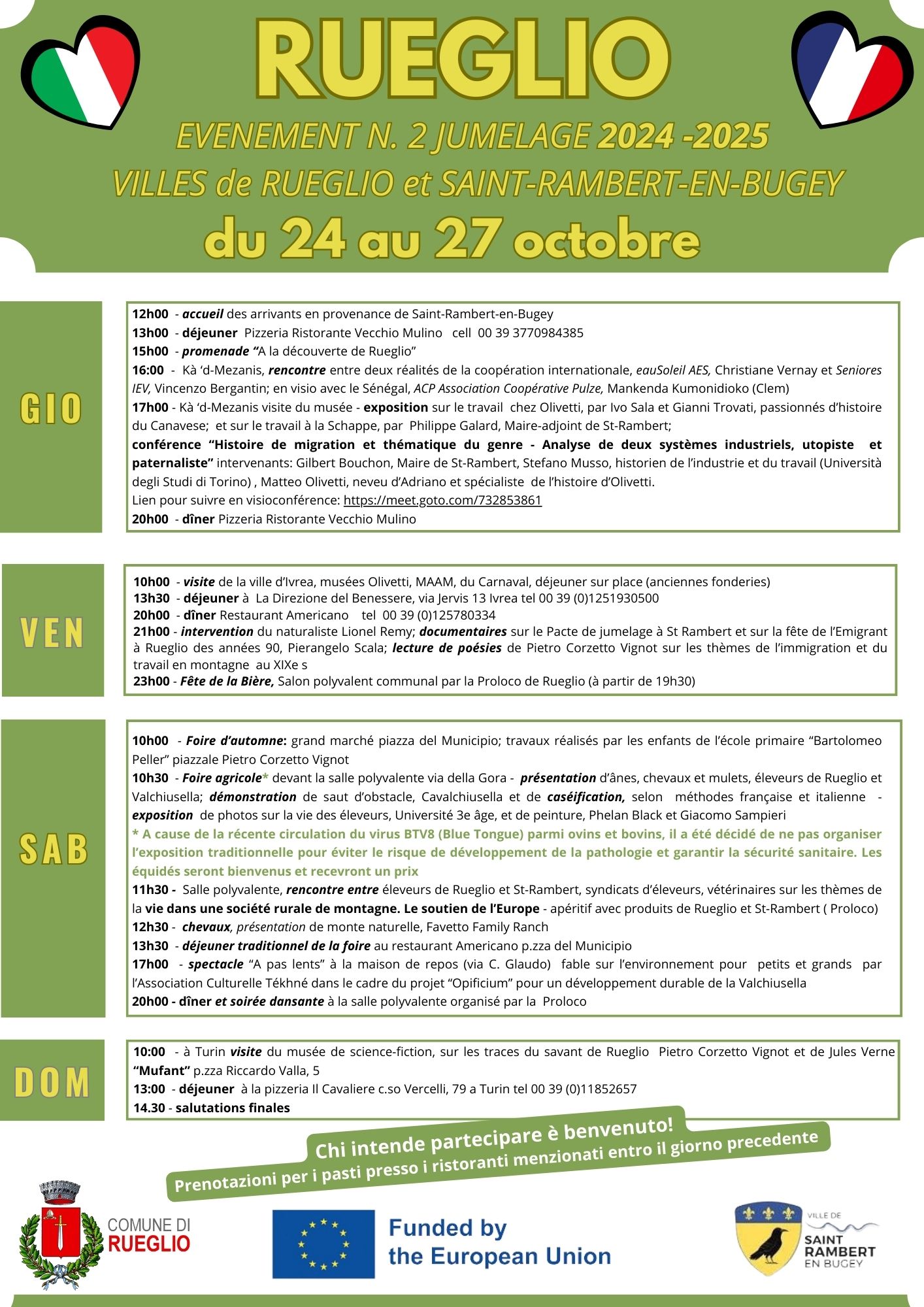Si informa la cittadinanza che è in programma il secondo incontro con la delegazione del comune di SAINT-RAMBERT-EN-BUGEY gemellato con il Comune di Rueglio.