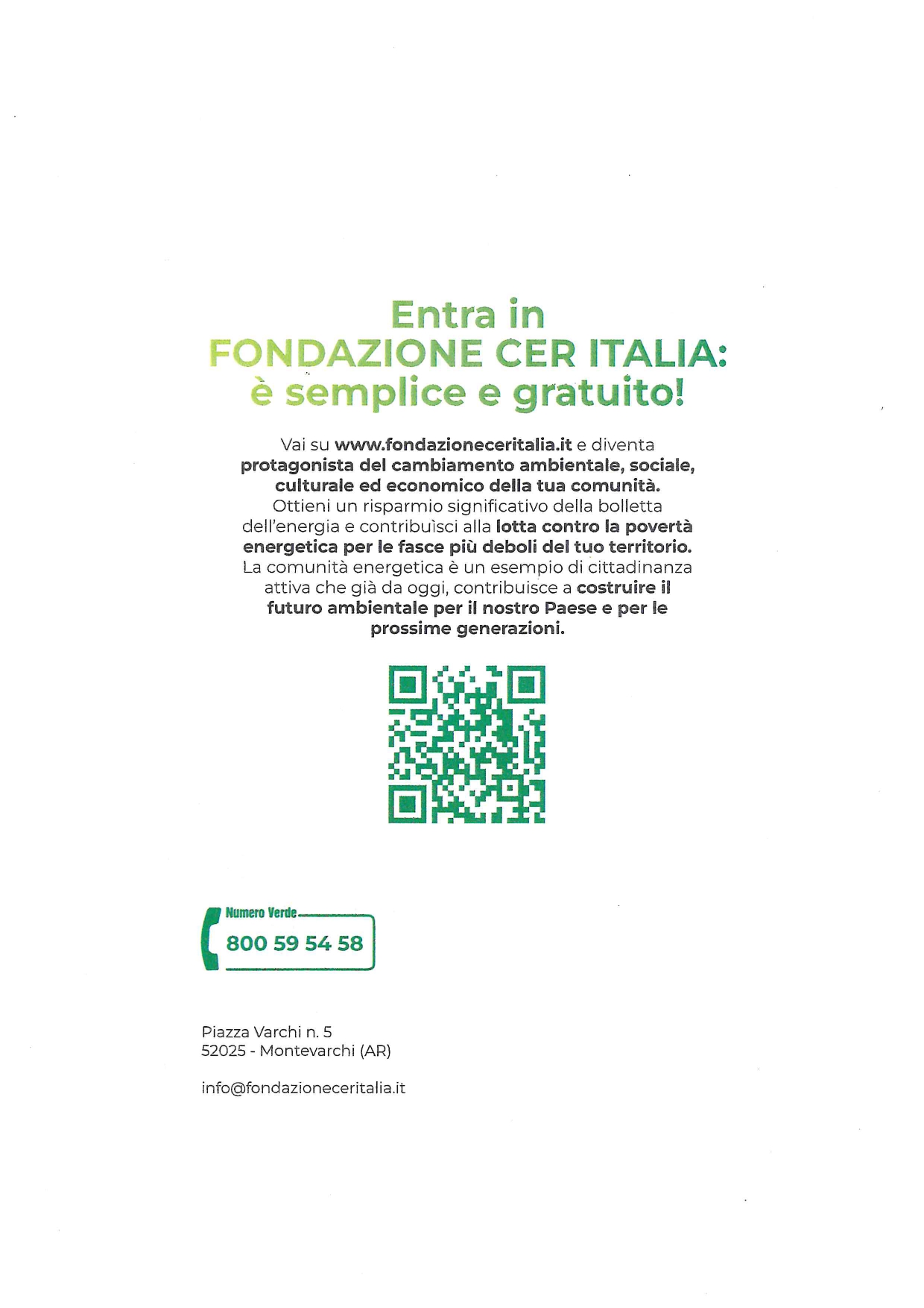 Contattare la Fondazione CER Italia al n. verde 800 59 54 58