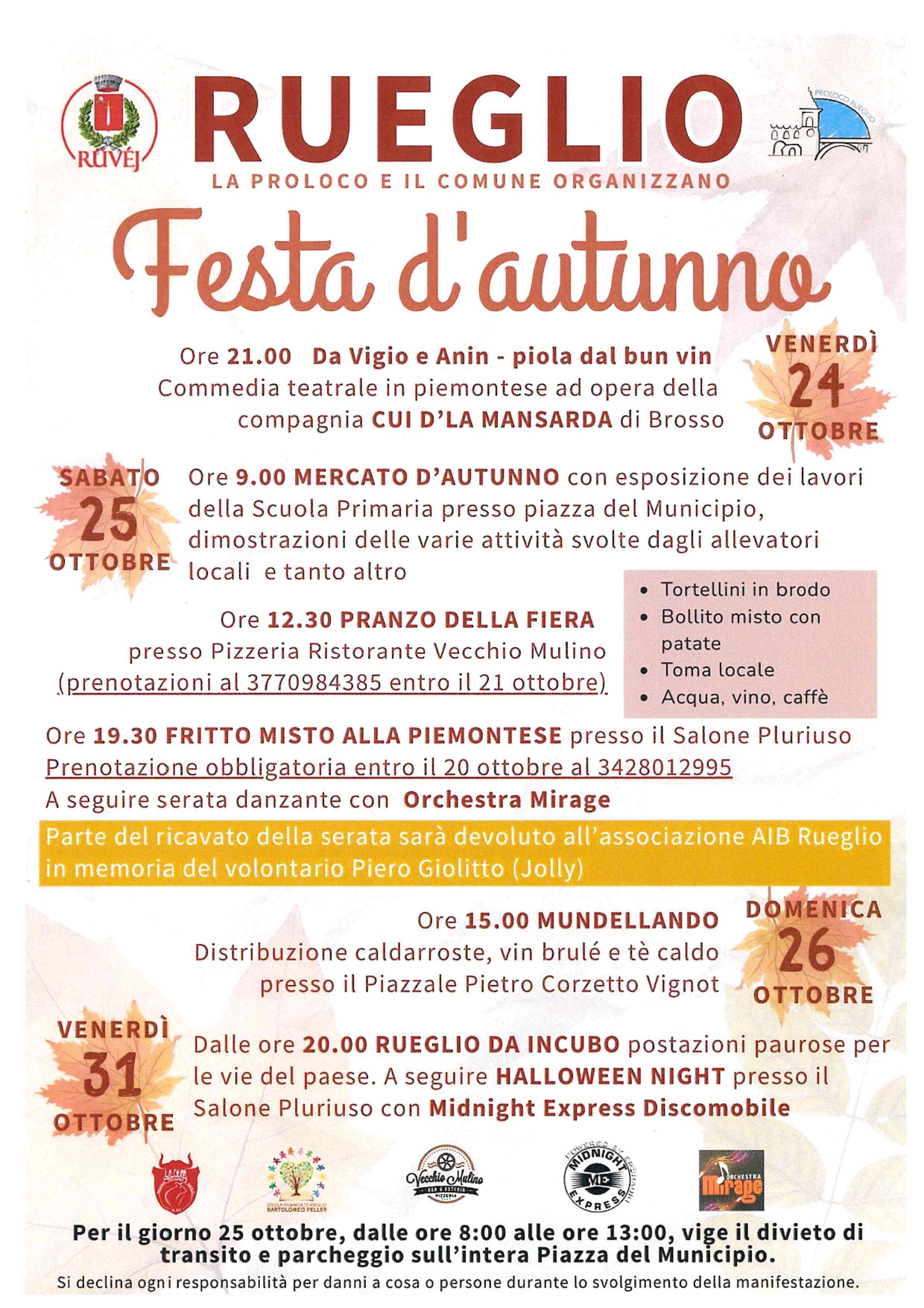 Arriva anche quest'anno la Fiera d'Autunno di Rueglio, evento che ha nella storica fiera zootecnica il suo "fulcro" e che da alcuni anni comprende una serie di appuntamenti "collaterali" fissi che fanno un momento irrinunciabile per la comunità, ma anche per il territorio circostante.