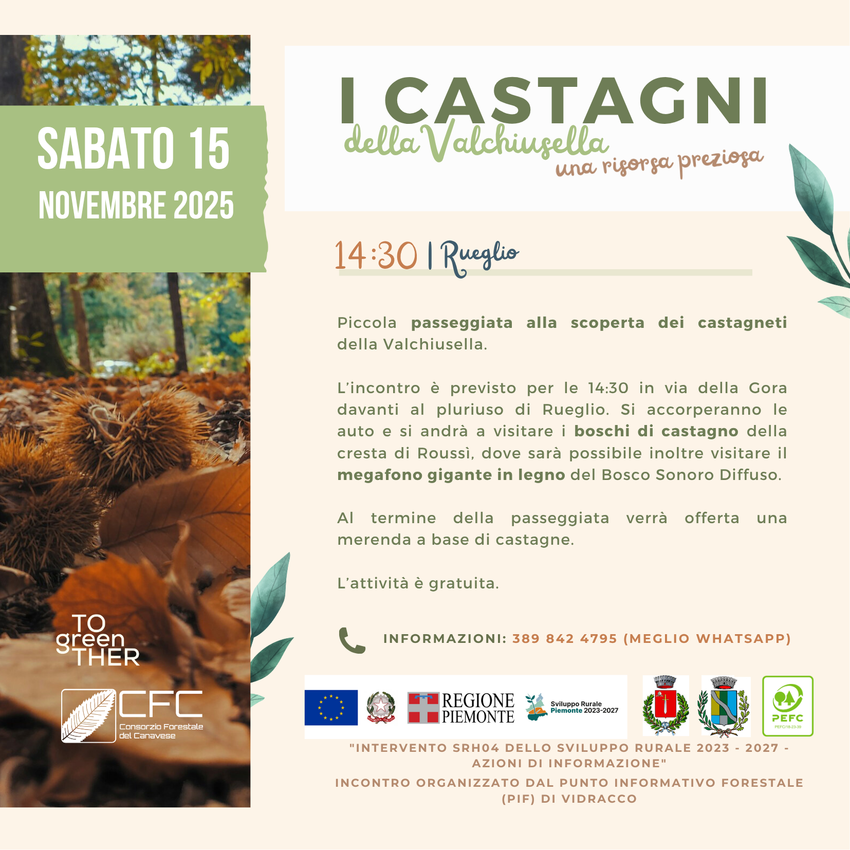 Nel corso della gita sarà possibile conoscere la storia di questi alberi e cogliere varie sfumature della straordinaria alleanza tra uomo e castagno che da sempre ha caratterizzato le nostre valli.