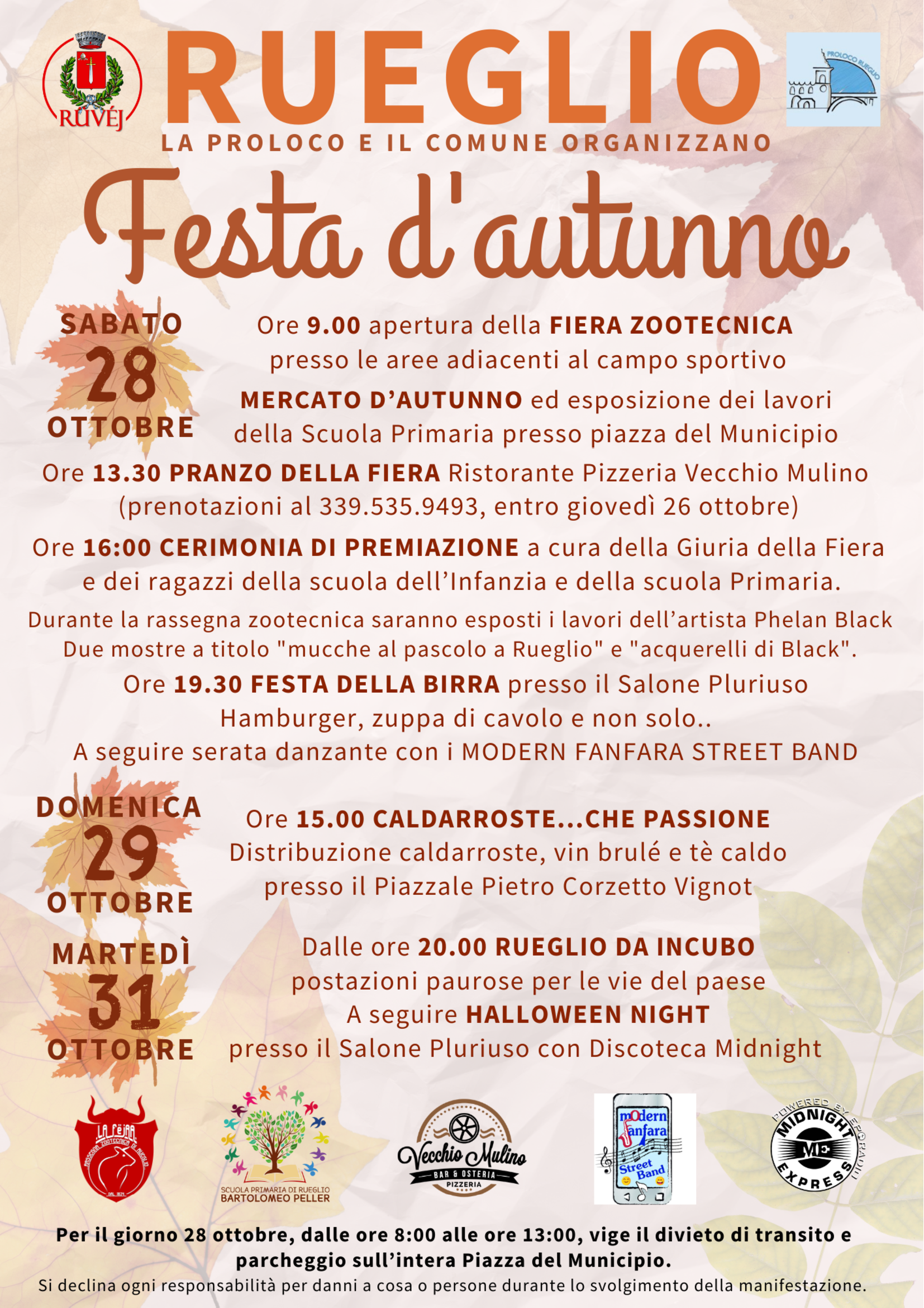 Arriva anche quest’anno la Fiera d’Autunno di Rueglio, evento che ha nella storica fiera zootecnica il suo “fulcro” e che da alcuni anni comprende una serie di appuntamenti “collaterali” fissi che fanno un momento irrinunciabile per la comunità, ma anche per il territorio circostante.
