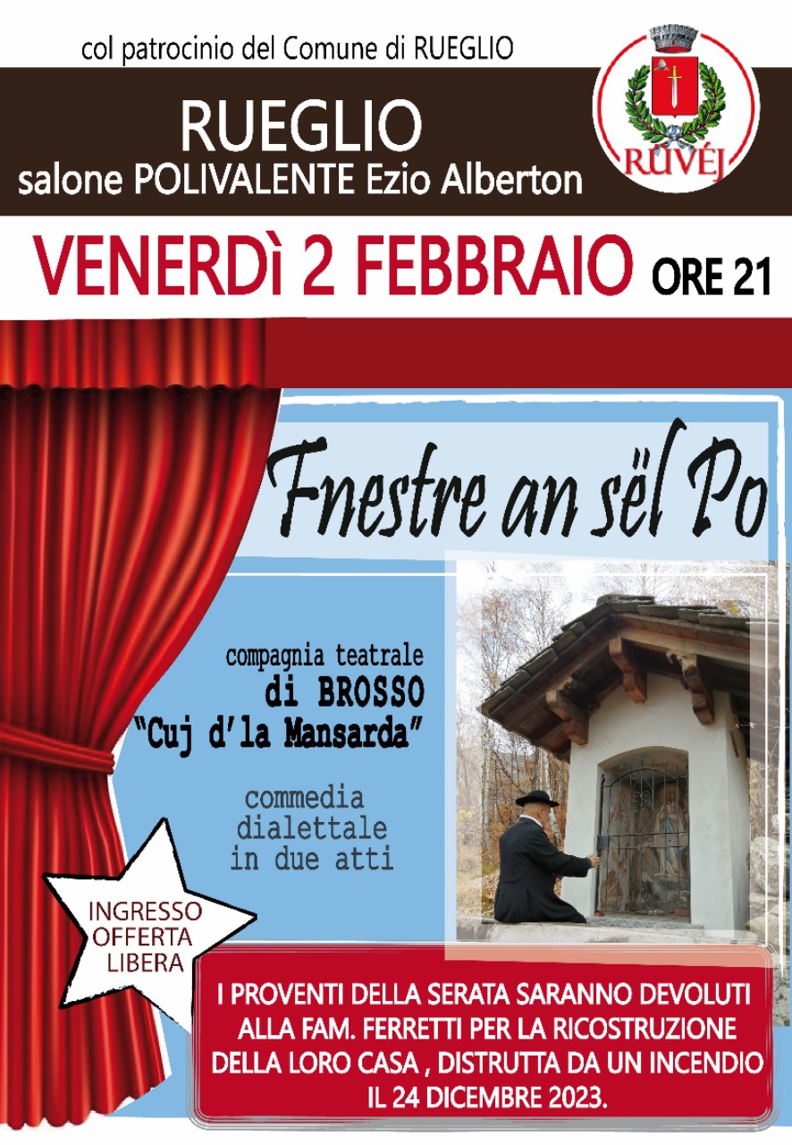 La compagnia teatrale di Brosso Cuj d'la Mansarda presenta la commedia dialettale in due atti dal titolo Fnestre an sël Po.