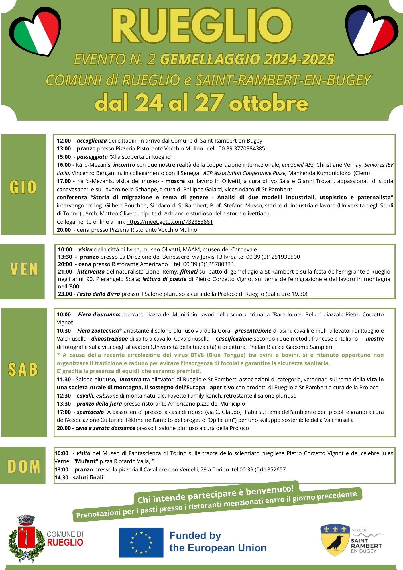 Si informa la cittadinanza che è in programma il secondo incontro con la delegazione del comune di SAINT-RAMBERT-EN-BUGEY gemellato con il Comune di Rueglio.