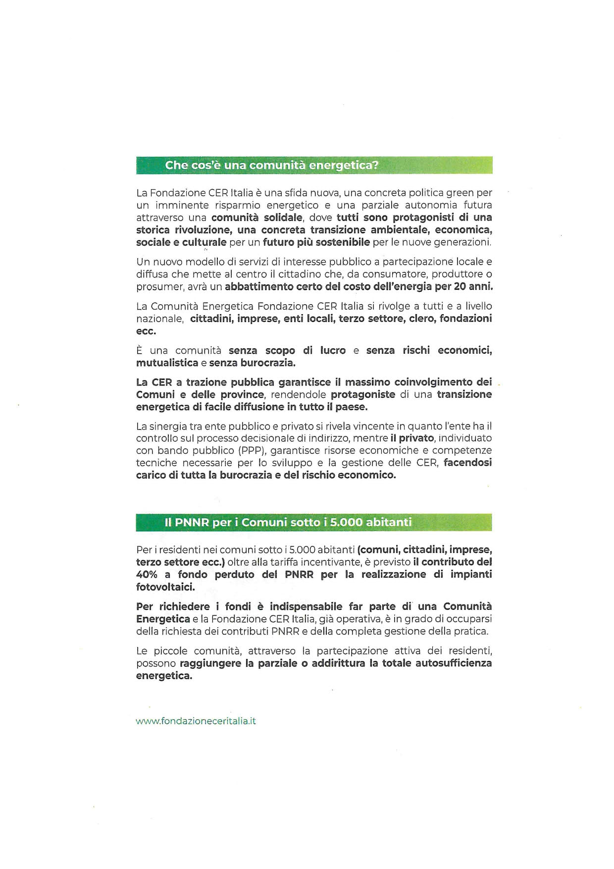 Contattare la Fondazione CER Italia al n. verde 800 59 54 58