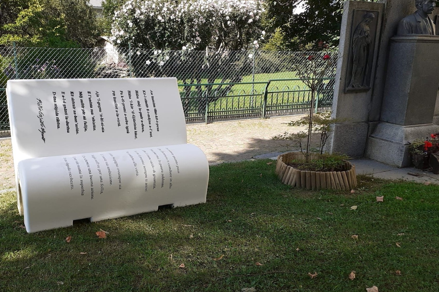 La prima è localizzata sul piazzale a lui dedicato, nei pressi del Palazzo Comunale; questi i versi trascritti (per la traduzione in italiano dovete venire a vederle di persona!):