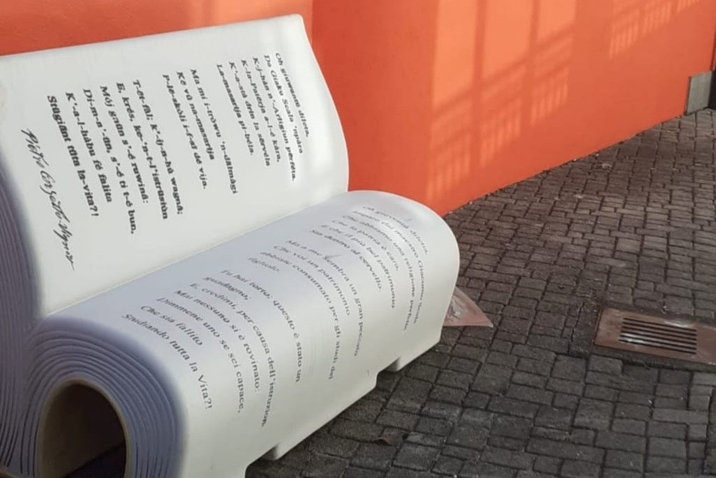 Ognuna delle panchine riporta estratti degli scritti poetici del vignot (in ruegliese e la relativa traduzione in italiano).