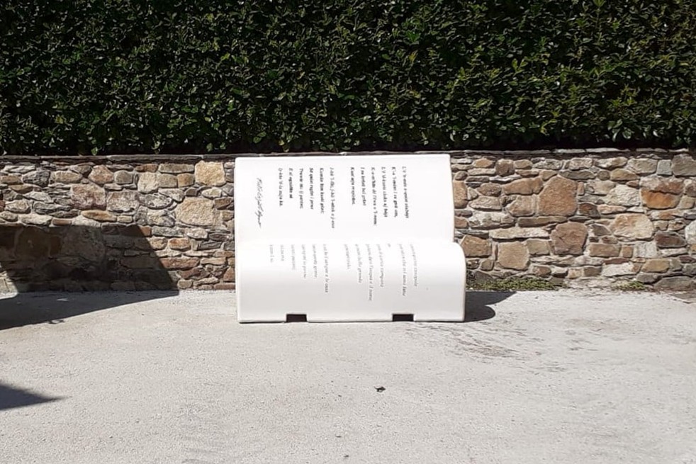 Ognuna delle panchine riporta estratti degli scritti poetici del vignot (in ruegliese e la relativa traduzione in italiano).