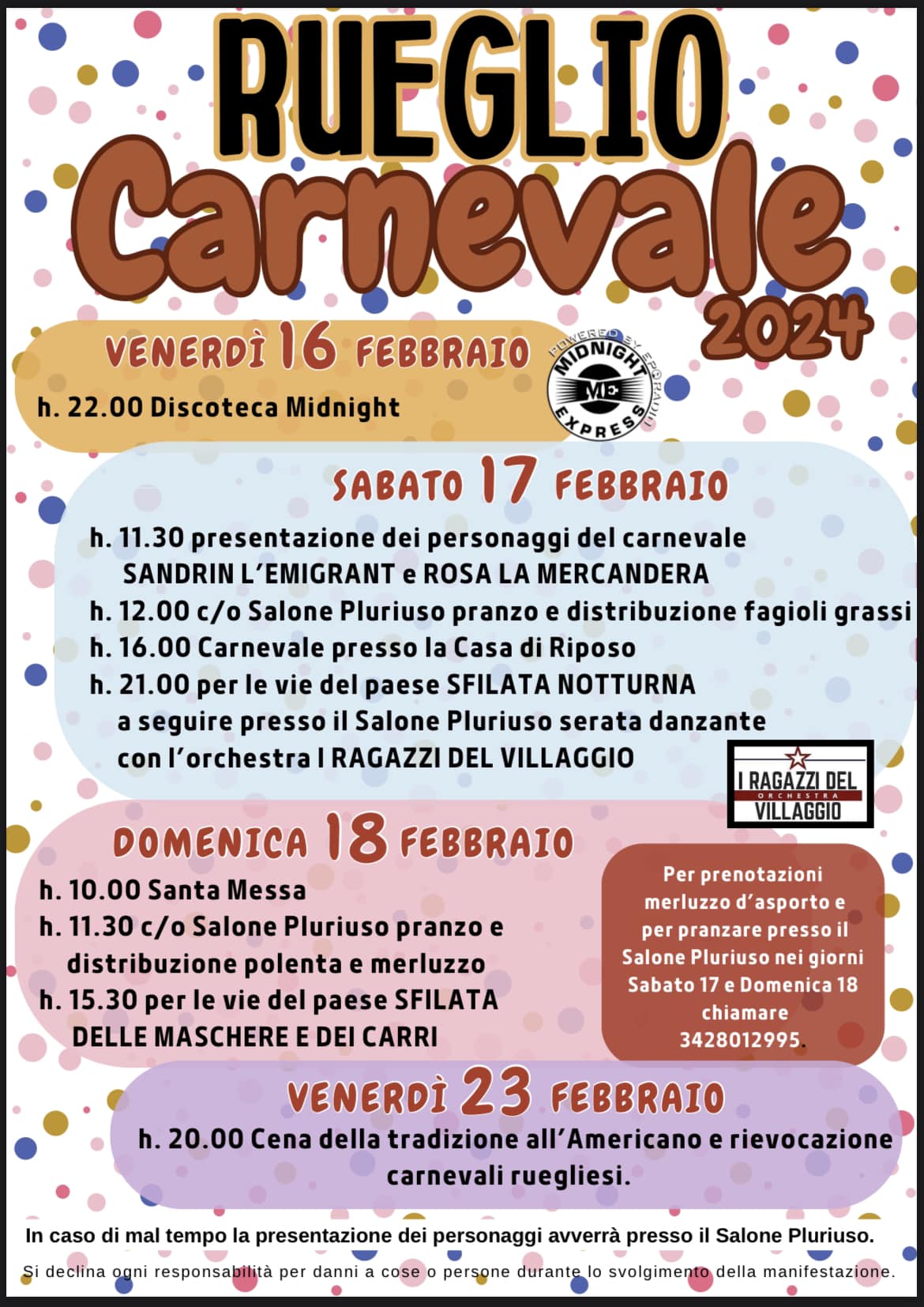 Arriva il Carnevale di Rueglio! Tre giorni di festa e una chiusura a sorpresa.