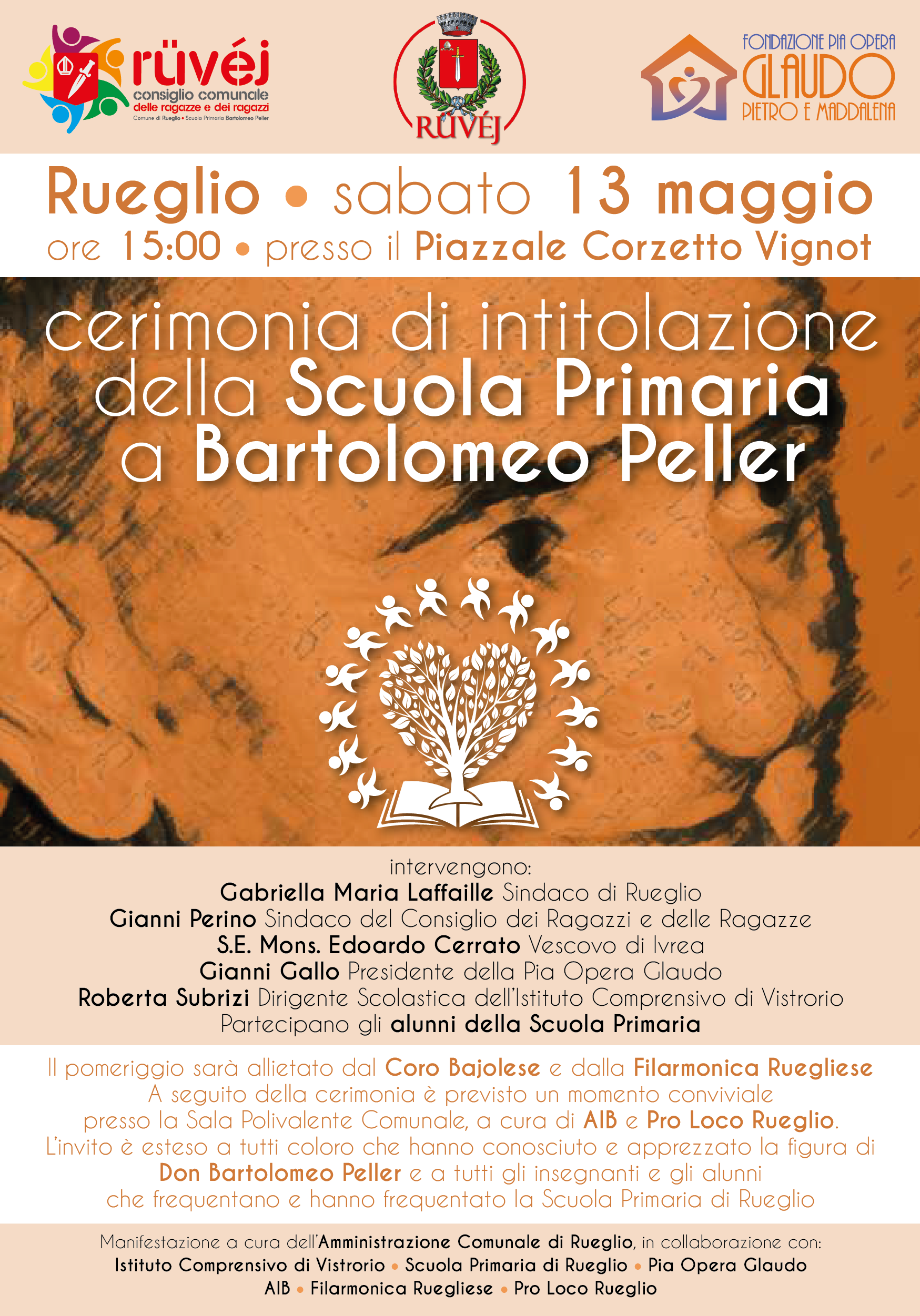 L’invito a partecipare è esteso a tutti coloro che hanno conosciuto e apprezzato la figura di Don Bartolomeo Peller, e a tutti gli insegnanti e gli alunni che frequentano e hanno frequentato la Scuola Primaria di Rueglio.
