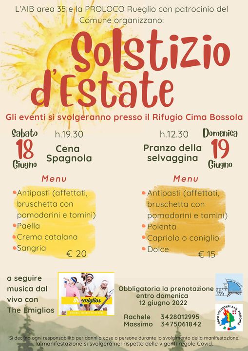 L'AIB area 35 e la Pro Loco, con il patrocinio del Comune, organizzano nel fine settimana del 18 e 19 giugno una grande festa per celebrare l'inizio dell'estate.