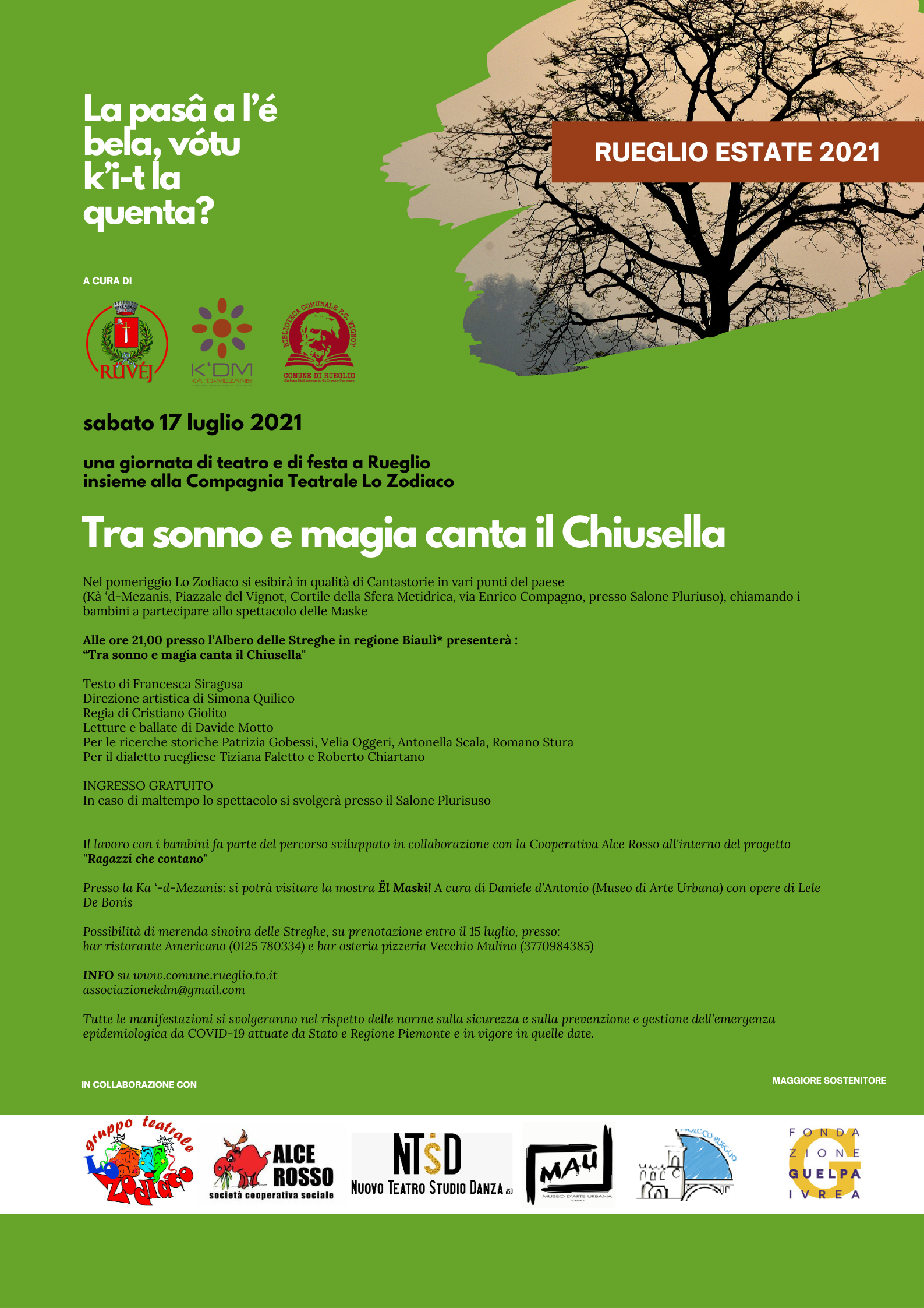 "La pasâ a l’é béla, votu k’it-la quènta?". La Compagnia Teatrale "Lo Zodiaco" presenta uno spettacolo teatrale sulle streghe (o maske), che vuole richiamare e mantenere vive le leggende locali, patrimonio della cultura immateriale della comunità.