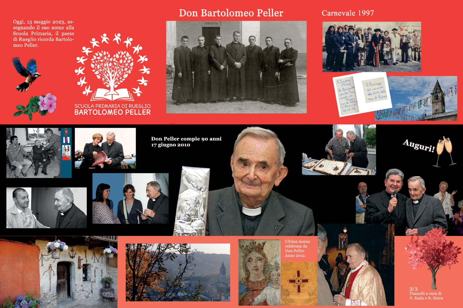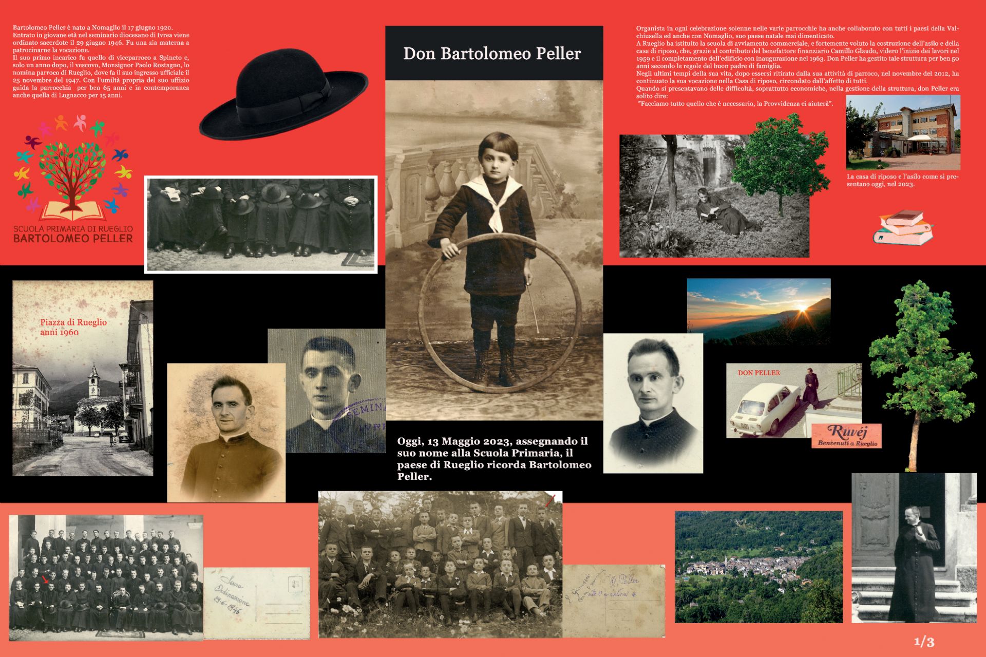 In occasione dell'intitolazione a Don barlomeo Peller della Scuola Primaria di Rueglio, è stata inaugurata la mostra a titolo "Bartolomeo Peller: un Don(o) a Rueglio", curata dai signori Romano Stura e Pierangelo Scala.