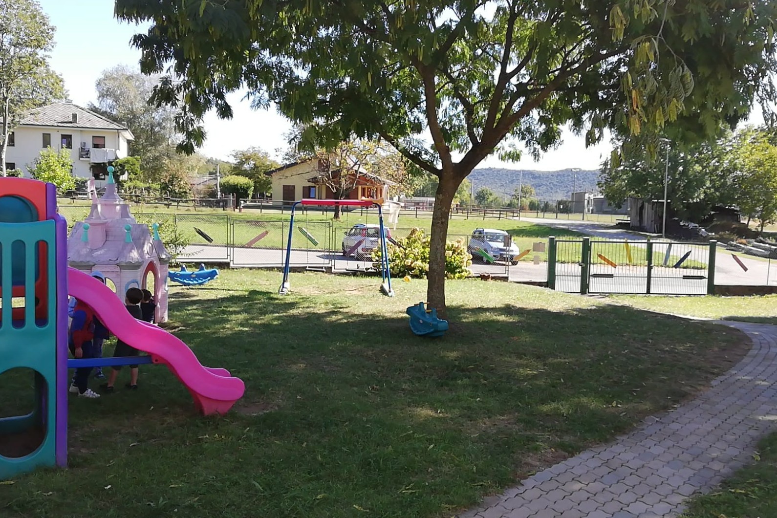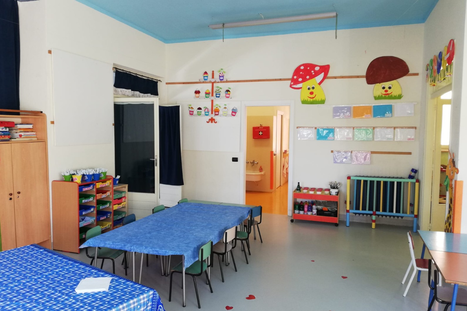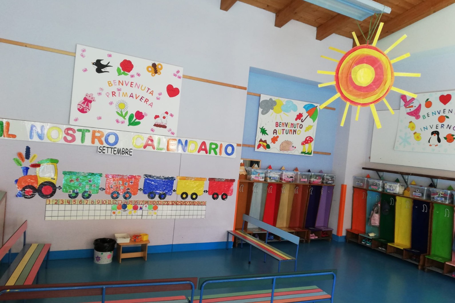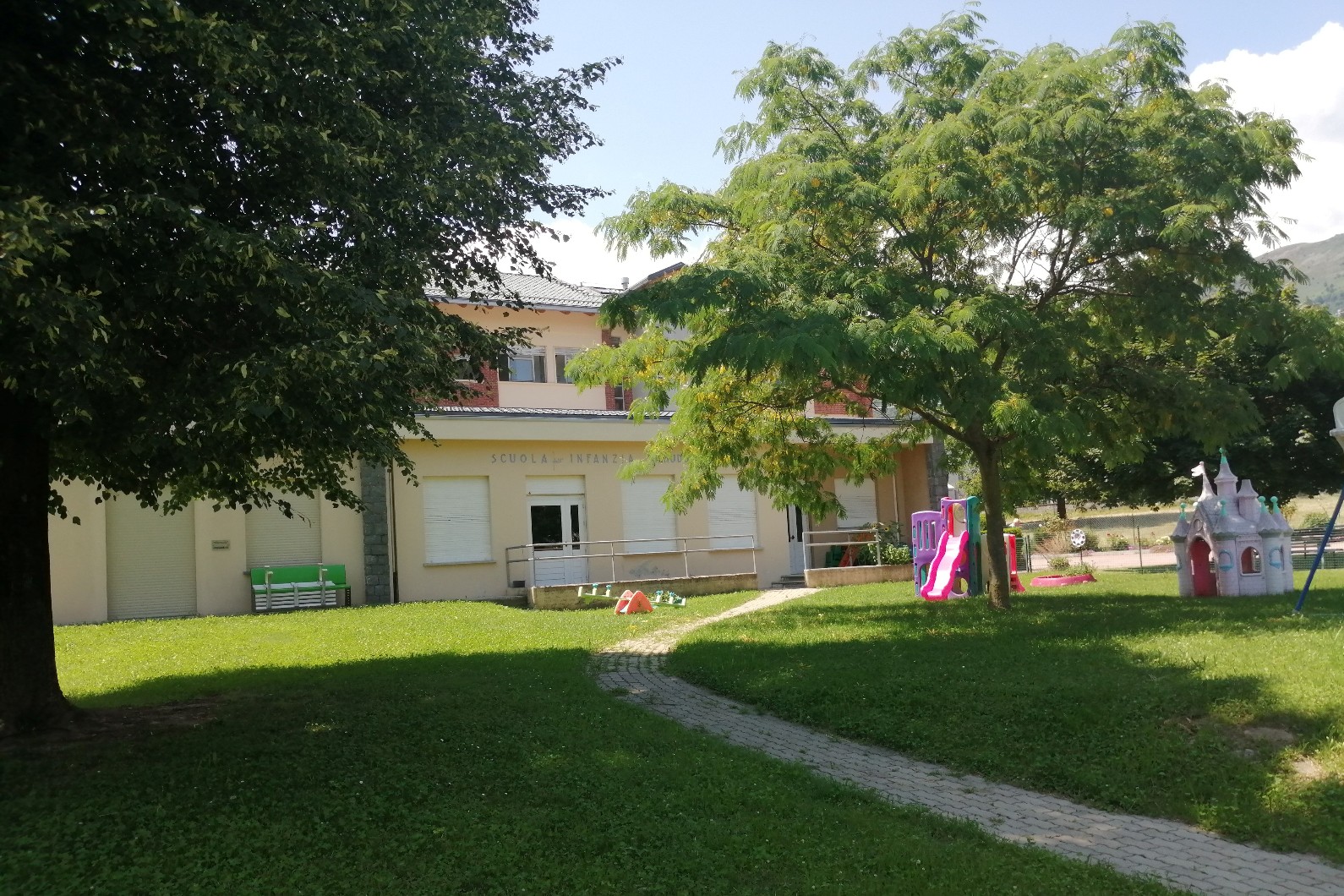 Oltre ad ampi locali, e al servizio mensa interno (lo stesso che prepara in sede i pasti per la casa di riposo), la scuola dispone di una ampia area verde di pertinenza, attrezzata con giochi e giostre. Come la Scuola Primaria, anche la Scuola dell'Infanzia ha inoltre a disposizione un ulteriore spazio di lavoro esterno, l'aula all'aperto localizzata nei pressi del campo da calcio, dove è ospitato anche l'orto didattico.