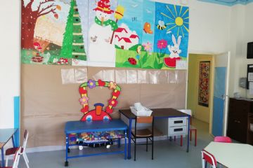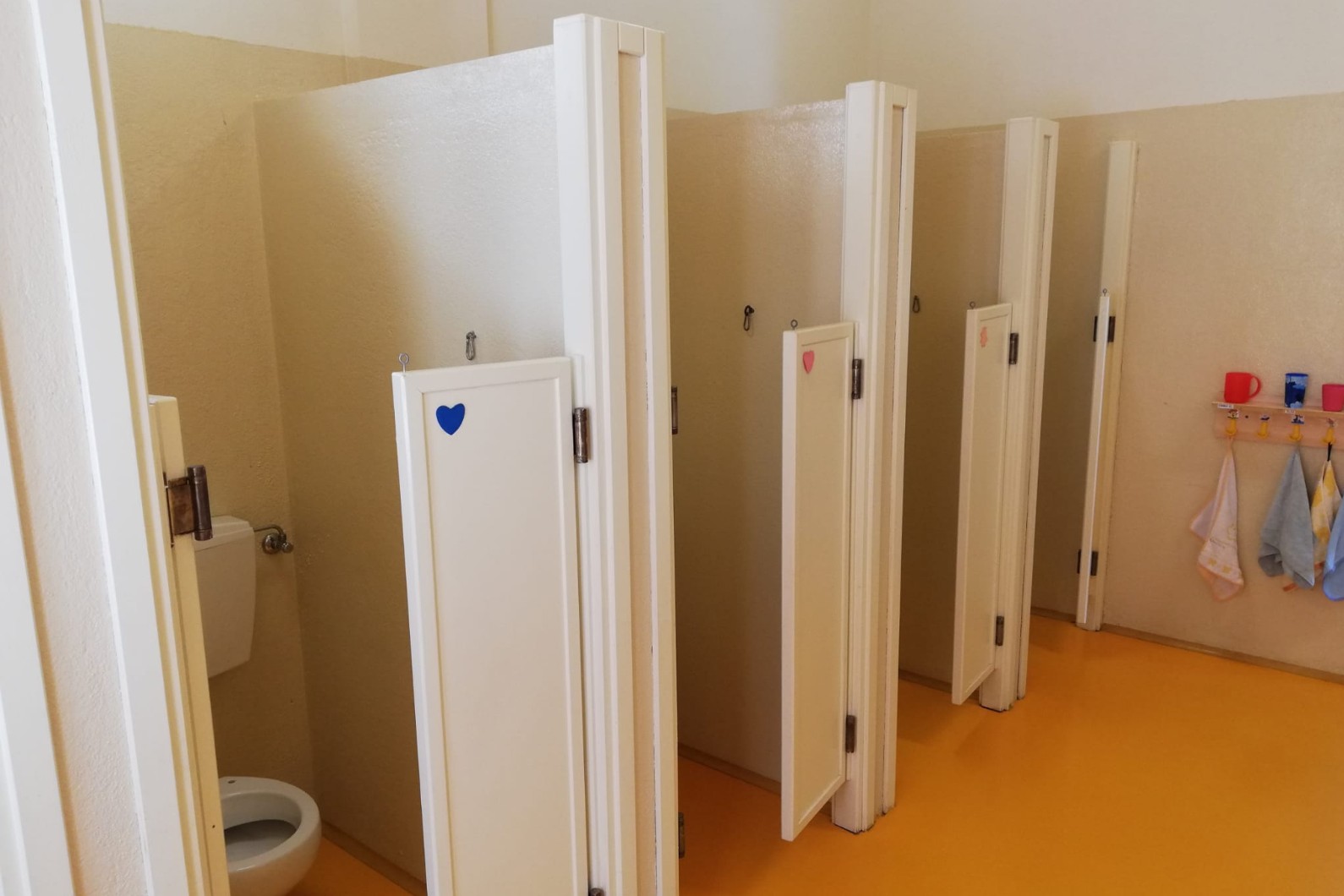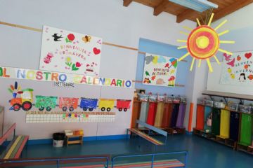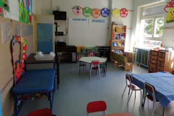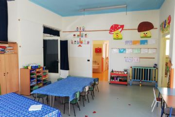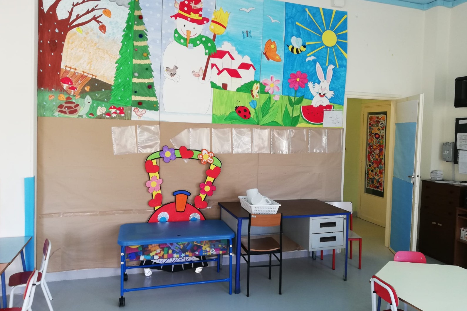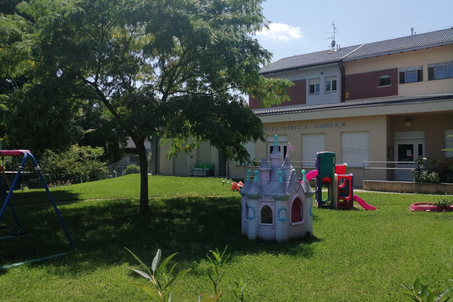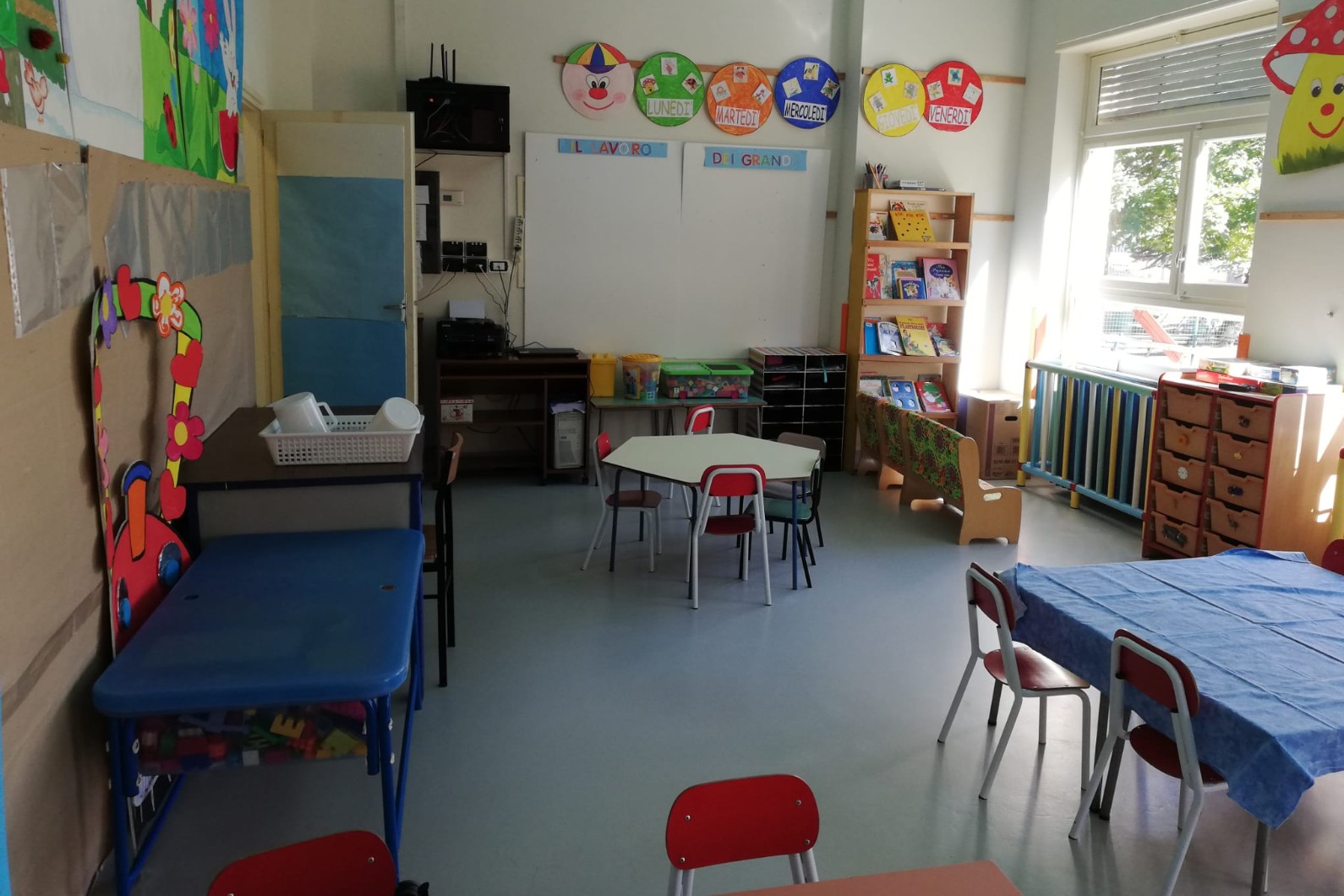 Oltre ad ampi locali, e al servizio mensa interno (lo stesso che prepara in sede i pasti per la casa di riposo), la scuola dispone di una ampia area verde di pertinenza, attrezzata con giochi e giostre. Come la Scuola Primaria, anche la Scuola dell'Infanzia ha inoltre a disposizione un ulteriore spazio di lavoro esterno, l'aula all'aperto localizzata nei pressi del campo da calcio, dove è ospitato anche l'orto didattico.